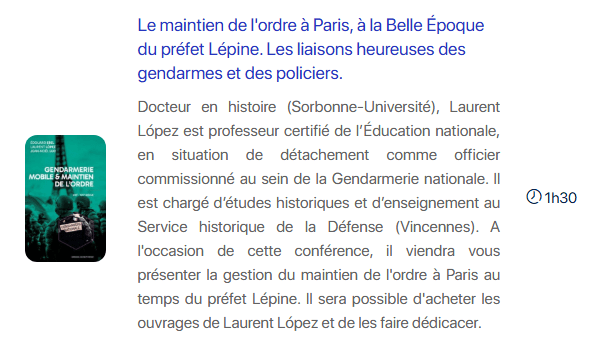 Conférence "Le maintien de l'ordre à Paris, à la Belle Époque du préfet Lépine. Les liaisons heureuses des gendarmes et des policiers"