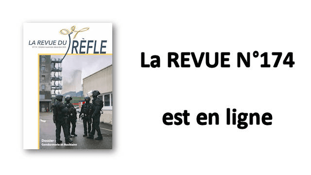 Cher(e)s abonné(e)s à la revue "Papier" ou "Numérique",La revue n° 174, avec son dossier "Gendarmerie et Nucléaire" est disponible en ligne, item "LA REVUE". La version "Papier" est à l'impression.Bonne lecture